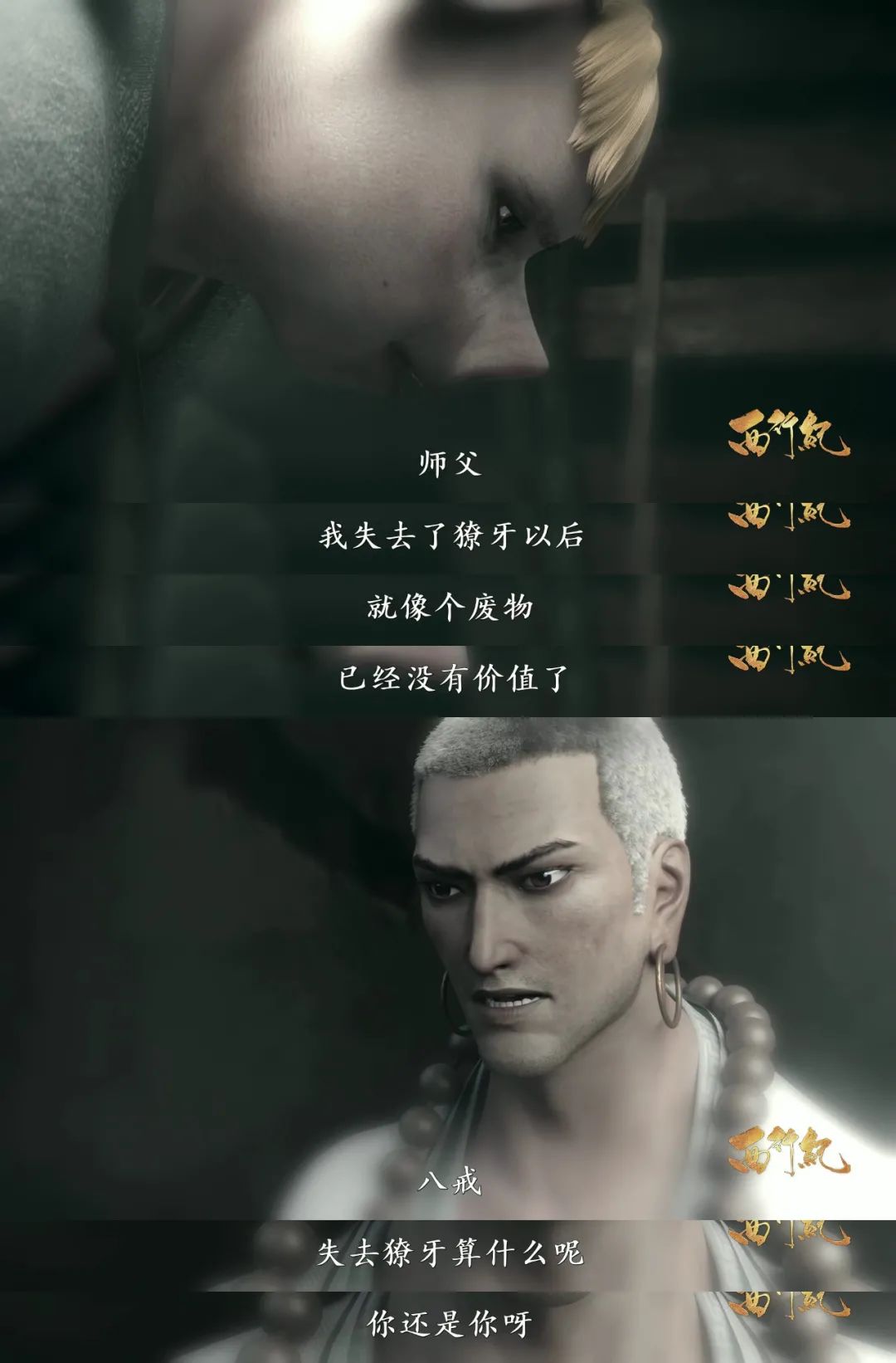唐三藏因不敢質疑權威,間接導致孫悟空死於天庭、魂魄被囚於南海,此後唐三藏便長期被悔恨折磨;敖雪幼年時因力量弱小,被信奉強者的龍族眾人欺凌,因此產生逆反心理,藉助虐殺實施對龍族的報復;豬八戒因被恐懼佔據內心,即便傷已痊癒仍長不出獠牙。故事開篇,《西行紀》的主角幾乎都是殘缺的個體,他們迷茫、掙扎,又不得其解。
