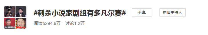 2021年春節檔,雷佳音、董子健等主演的動作電影《刺殺小説家》上映。這部同樣由雷佳音主演的影片在電影發行中果斷“蹭”了“凡爾賽”的熱度,微博話題#刺殺小説家劇組有多凡爾賽#閲讀量超5000萬,討論超1.2萬。儘管影片最終口碑一般,但雷佳音、董子健、楊冪、於和偉等主創凡爾賽發言卻收穫觀眾的一波好評,網友評價“這個劇組好有趣”“演員們好幽默”等等。雖然《刺殺小説家》借梗營銷的熱度與效果不及《超時空同居》,但多少也為電影貢獻的話題與關注度。