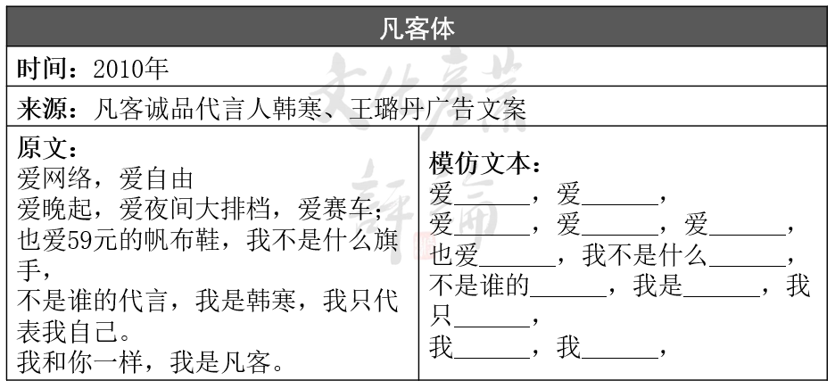能夠創造一種廣受歡迎的文體實現“病毒營銷”的目的,時至今日仍是許多廣告人與營銷公司追求的目標。若是無法創造新文體,利用現成的網絡熱梗進行營銷,同樣能產生較好的效益。