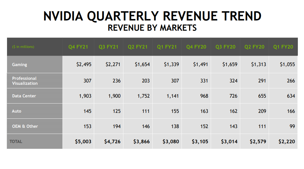從它的年度財報中可以看出,自 30 系的顯卡發佈以來,公司的收入就在不斷的往上漲,特別是遊戲分類。