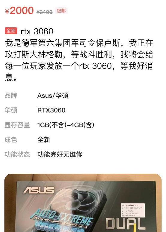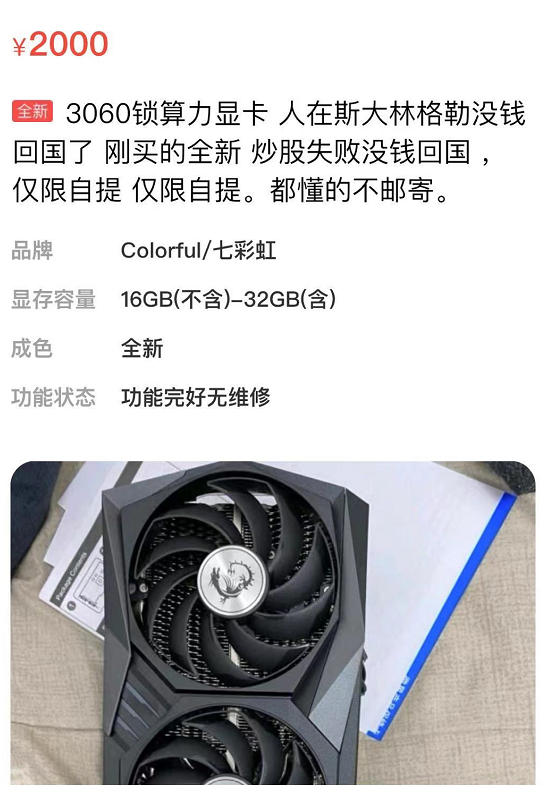 幾乎是同時,有人被困在斯大林格勒回不了國,也在賣顯卡。。。
