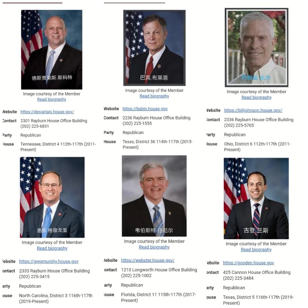 搜索他們的信息資料,他們有一個共同特點:特朗普鐵桿支持者。其中出鏡較多的是古登.蘭斯,2021年1月6日,其曾鼓動發起挑戰選舉人票,以圖扭轉2020美國總統大選結果。另外他是反華急先鋒之一,2020年4月初,曾和美共和黨布萊克.伯恩共同發起過就新冠疫情追責中國的法案。