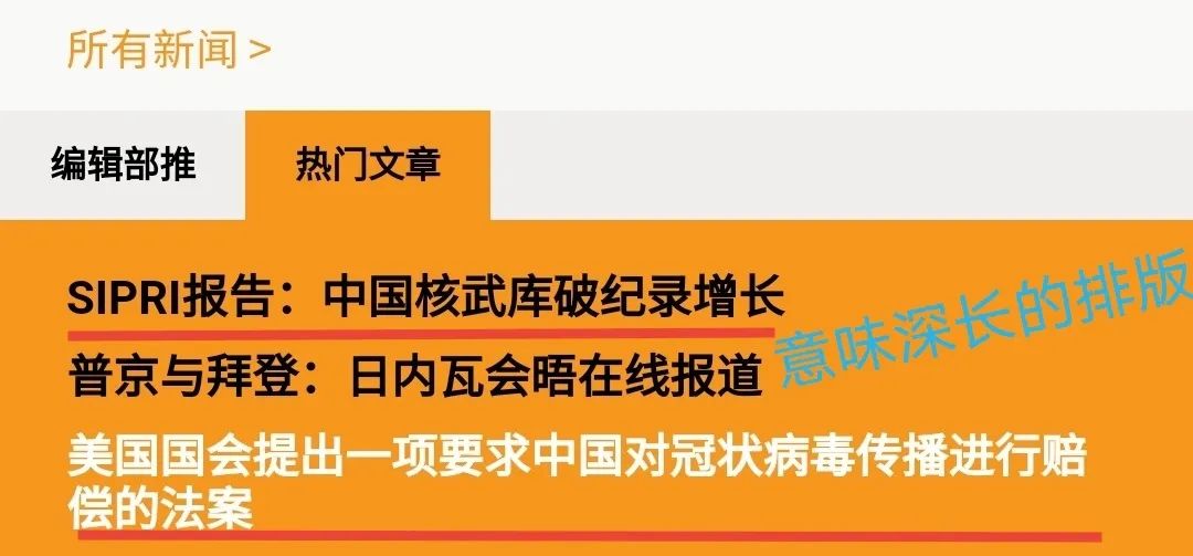 上述消息由俄羅斯衞星通訊社6月16日發佈,很快其成為熱門新聞,甚至排在了普拜日內瓦峯會前面。也許俄媒當天的編輯,意識到了美國政客們提出如此瘋狂議案的不可理喻,其當天熱門新聞的排版意味深長: