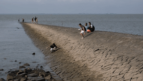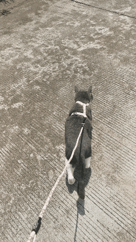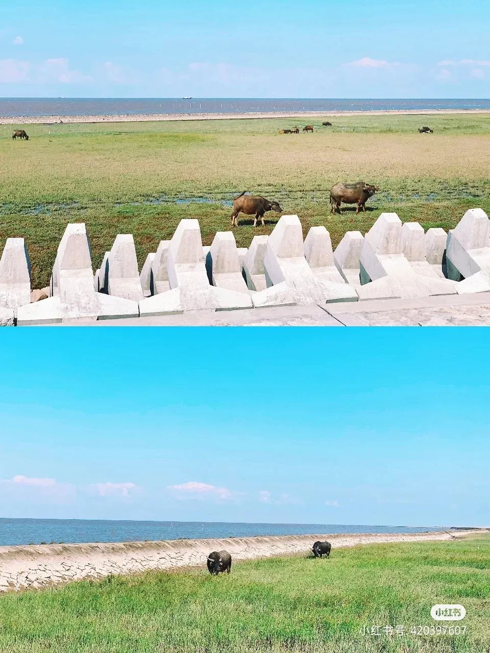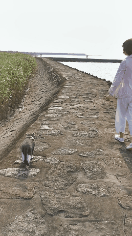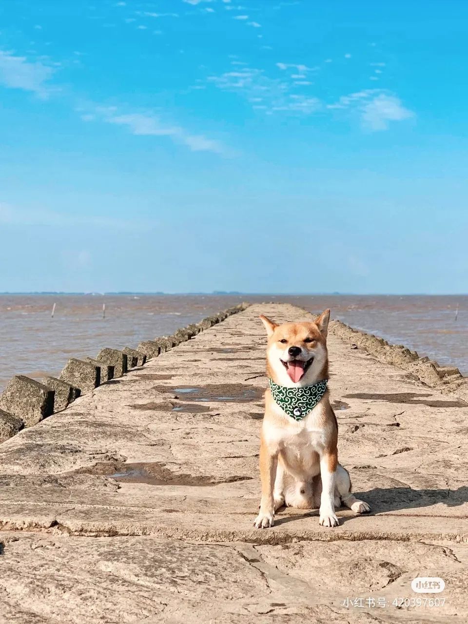 在小紅書上,她看到過去的人都帶着狗子,想想看,在海堤上,兩人一狗,多麼浪漫!
