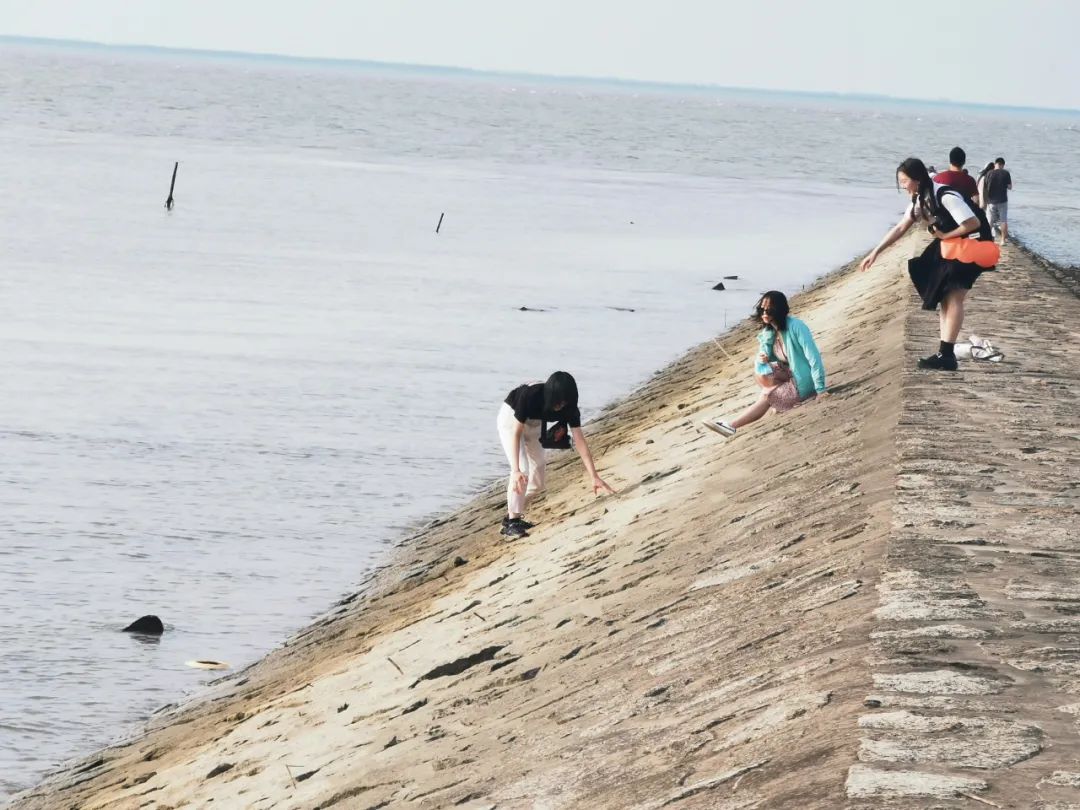 這時,海堤上的人也逐漸多了起來,有很多情侶,也有很多帶着小朋友出遊的一家人。