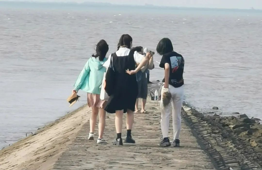 原來是海堤最底下長滿了青苔,非常濕滑,小姐姐一不注意滑倒了。還好她動作迅速,扒住了海堤。