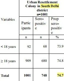 研究數據顯示,在德里南部低收入人羣當中,74.7%抗體陽性,2-18歲的人羣和成年人幾乎沒有區別。