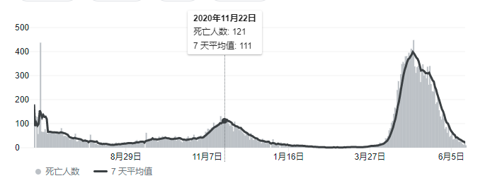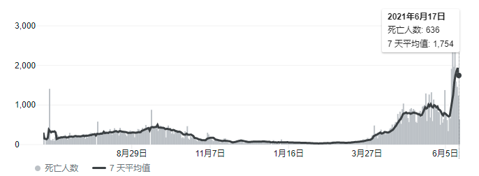 JHU發佈的Maharashtra邦新冠死亡人數統計
