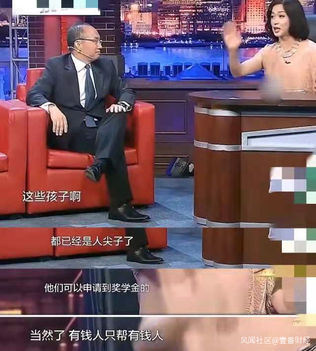 當時主持人金星揶揄道,在哈佛讀書的中國學生是什麼人?他們大都從小就開始找家教學英語,有些從小學唸的就是美國學校,更別説有些是憑藉鋼琴、帆船這些特長進去的,能給孩子從小提供這樣教育的家庭,至少也得年入百萬,用得着別人資助?
