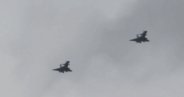 18日上午,在空軍第一所航空學校——東北老航校舊址上空,殲-20和殲-16、殲-10等多型戰機以戰鬥姿態表達“搏擊長空心向黨”的藍天情懷。