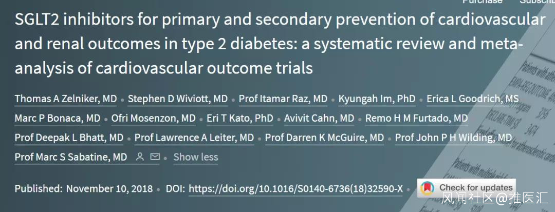 2019年發表的一項薈萃分析顯示,在包含34322名患者的3項大型臨牀試驗中,不同的SGLT2抑制劑將主要不良心血管事件(MACE)發生幾率降低11%。此外,SGLT2抑制劑在降低慢性腎病(CKD)風險方面也表現出益處。這些益處隨後在未患有2型糖尿病的心衰患者和慢性腎病患者中也得到了驗證。