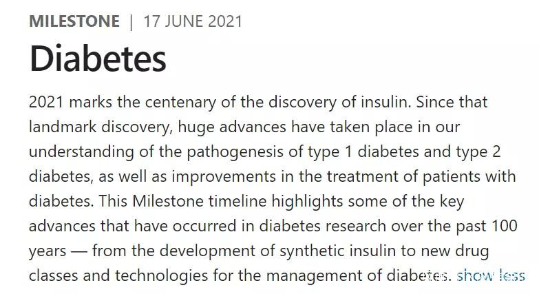 [1] Milestones in diabetes. Retrieved June 17, 2021, from https://www.nature.com/immersive/d42859-021-00002-5/index.html