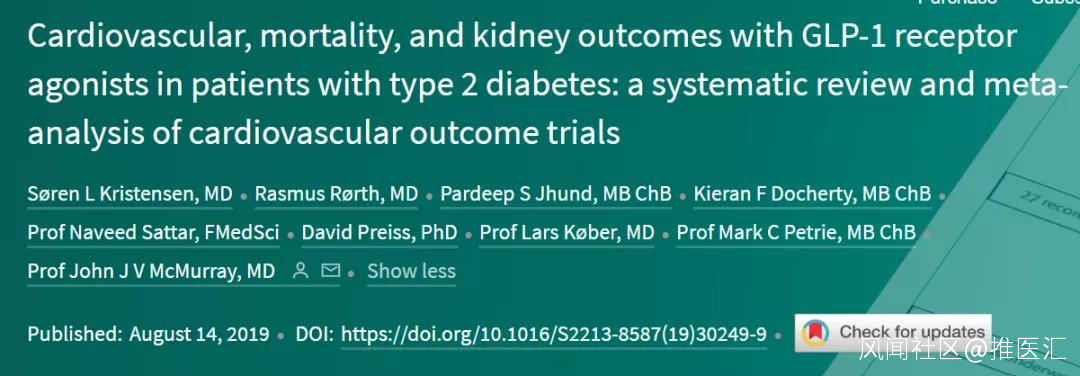 在2019年發佈的另一項薈萃分析發現,GLP-1受體激動劑在多項臨牀試驗中也能夠將MACE發生率降低12%。
