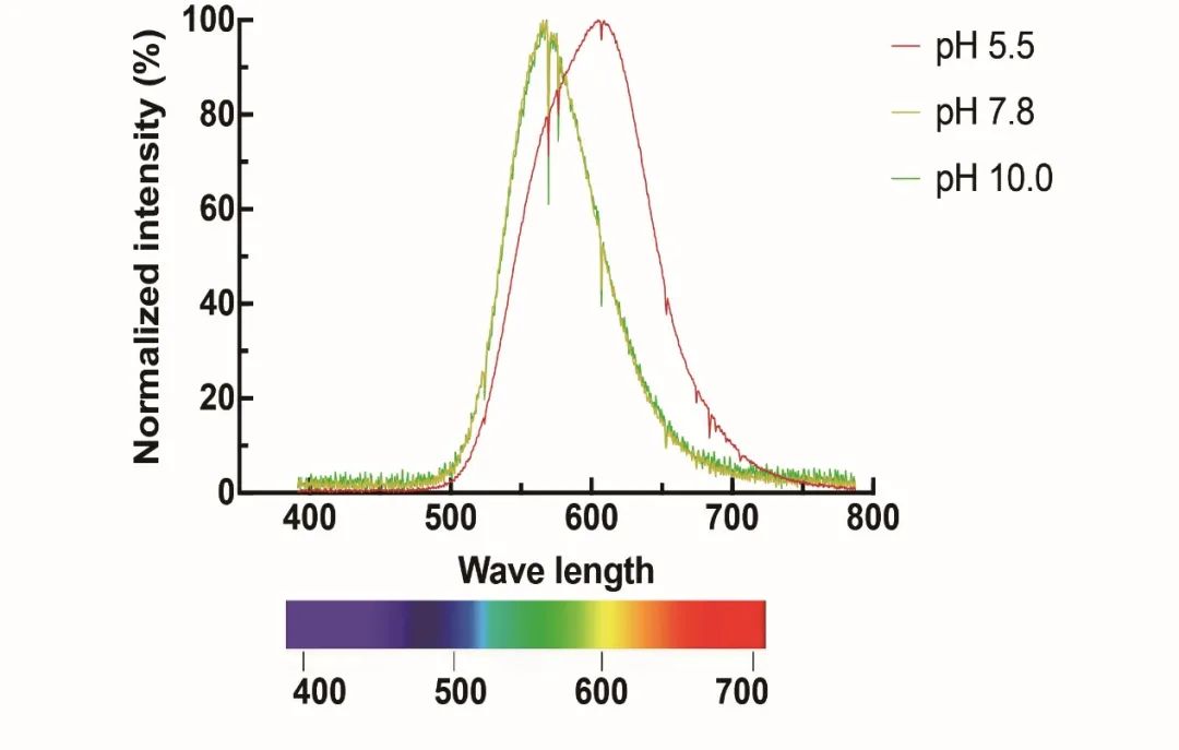 雲南扁螢的熒光酶在不同pH條件下的發光光譜(Liu et al., 2019)