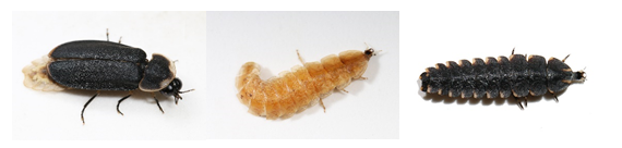 雲南扁螢的背面,雄成蟲(左),雌成蟲(中)和幼蟲(右) (董志巍 攝)