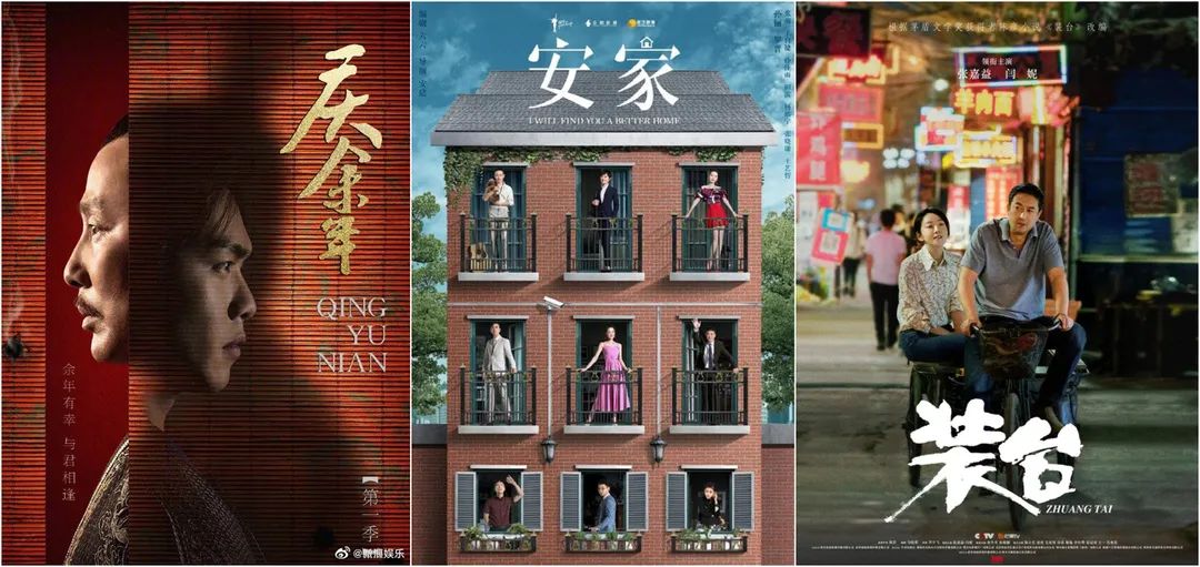 ▲電視劇《慶餘年》《安家》《裝台》海報