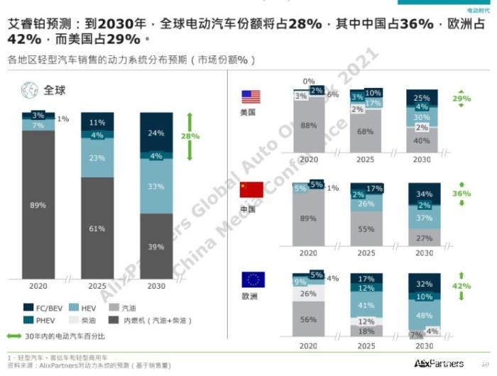 在具體銷量方面,2020年全球輕型汽車銷量為7700萬輛,艾睿鉑預測今年將回彈至8300萬輛,但直到2025年才會回到峯值。其中,美國受供應短缺等因素,2021年銷量為1640萬輛,到2022年將超過1700萬輛。歐洲銷量2021年預計將達到1760萬輛,2024年將恢復到2000萬輛。中國2021年銷量預計穩健保持在2540萬輛,但2025年以前將會不超過2017年的峯值。