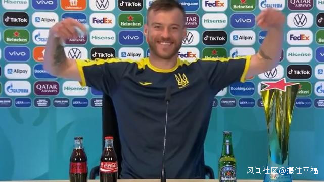 據“今日俄羅斯”電視台報道,保羅·博格巴和克里斯蒂亞諾·羅納爾多可能會抱怨2020年歐洲盃的贊助商可口可樂和喜力啤酒,但烏克蘭球星安德里·亞爾莫連科肯定不會——在新聞發佈會上他開玩笑地把可口可樂和喜力啤酒的瓶子移到離自己更近的地方。