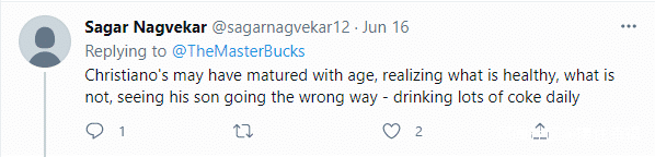 因為與C羅的舉動形成鮮明對比,人們將略胖一點的切爾切索夫(前國際門將)與身材健碩的C羅進行比較,一些人開玩笑説:“切爾切索夫的舉動將使可口可樂的股價有所回升,而C羅則會使股價下降。”不過事件發酵後,有網友挖出了C羅在早期職業生涯中為可口可樂和肯德基代言的宣傳照,並諷刺C羅並不像他口中所説的那樣正直,導致人們紛紛指責這位36歲的傳奇人物虛偽。不過也有網友為C羅辯護,“説句公道話,這顯然是2006年的照片,他現在所做的仍然是正確的”“C羅可能隨着年齡的增長而成熟,能意識什麼是健康的,什麼是不健康的”。