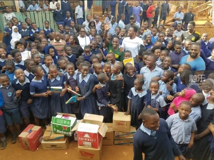 Brian Diang’a和夥伴們一起為貧民窟內學校的兒童們捐贈圖書