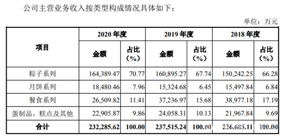就是這樣看似“老不正經”的打法,五芳齋連續三年榮登端午節粽子品牌TOP10 榜首。根據招股書顯示,2018年,五芳齋“粽子系列”銷售額達到15億元,到2020年,該系列銷售額成功上漲到16.44億元,業務佔比也由66.28%上升至70.77%。