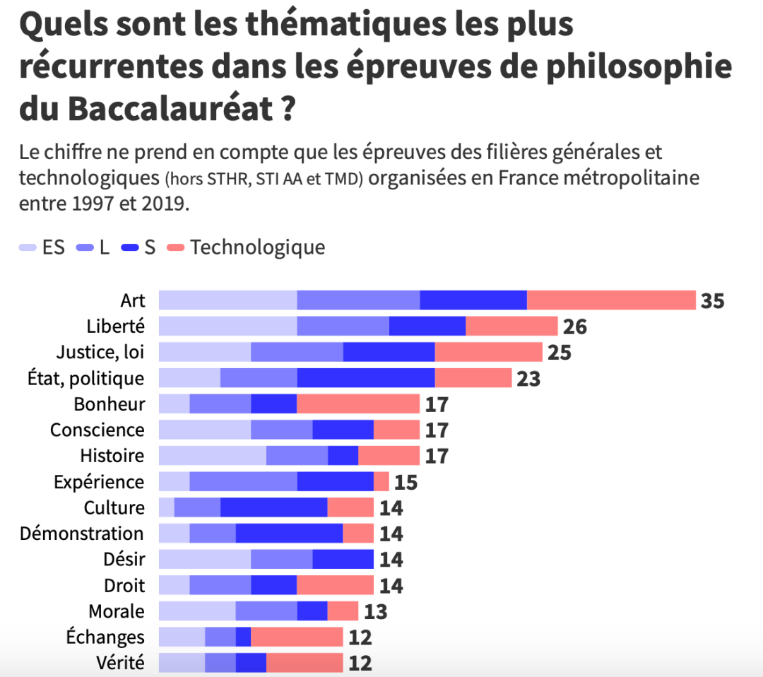 而bac哲學考試的主題出現的頻率最高的竟然是藝術,其次是自由…