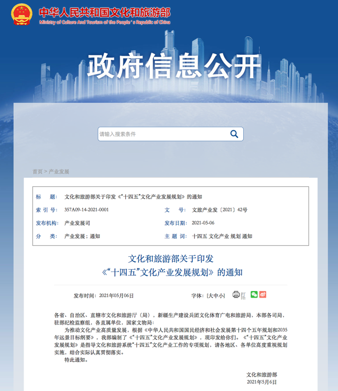 為推動文化產業高質量發展,由文化和旅遊部編制的《“十四五”文化產業發展規劃》(以下簡稱《規劃》)近日正式發佈,是指導文化和旅遊系統十四五文化產業工作的專項規劃。