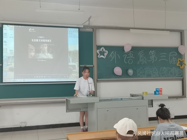 活動伊始,主持人介紹了本次活動旨在展示學生的個人才藝和風采,促進學生的綜合素質提高。首先上場的同學準備的片段是《無敵破壞王》,視頻開頭歡快的音樂引起了同學們的興趣,這位同學在台上從容的跟着視頻配音,她一個人在分飾的幾個角色之間切換自如,獨具風格的表演讓觀眾都沉醉其中,她勇敢自信的表現為本次活動開了一個好頭,同學們都不由得鼓起了掌聲。接着上場的兩位同學合作完成了一個作品,由默契、整齊的合唱開頭,而在後續的表演中她們又凸顯出了各自的風格特點。