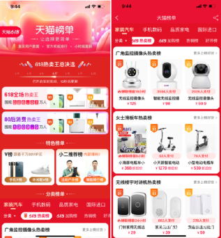 這次的618玩法中,天貓榜單也是發現新品一種非常有效方式,小二推薦榜、618熱賣榜、熱銷榜、好評榜等在內的上百份榜單形成流量入口,各種曝光、引流等方式助推產品銷量。