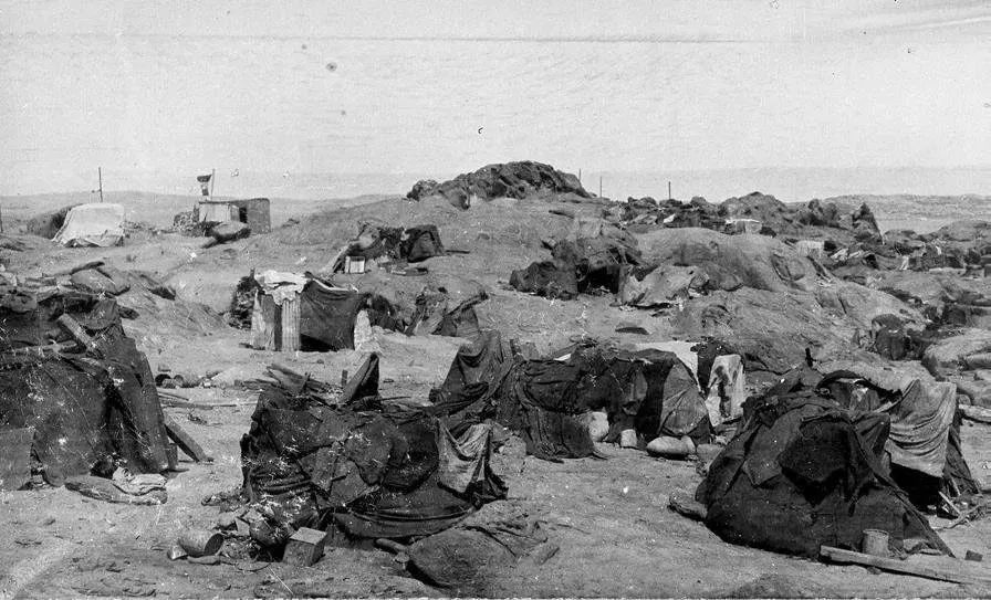▲1905年前後,德國士兵在被俘虜的納馬人身邊拍照留念。