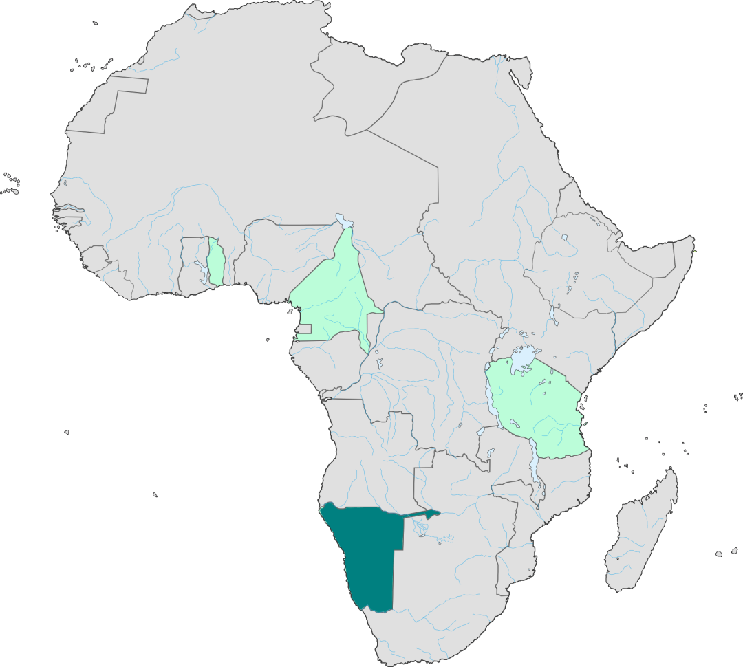 ▲德屬西南非洲(圖中深綠色)與其他德國殖民地(淺綠色)。這些是1884年至1915年德意志帝國的殖民地之一。德屬西南非洲面積為83.51萬平方公里,是德意志帝國在當時歐洲大陸面積的1.5倍。