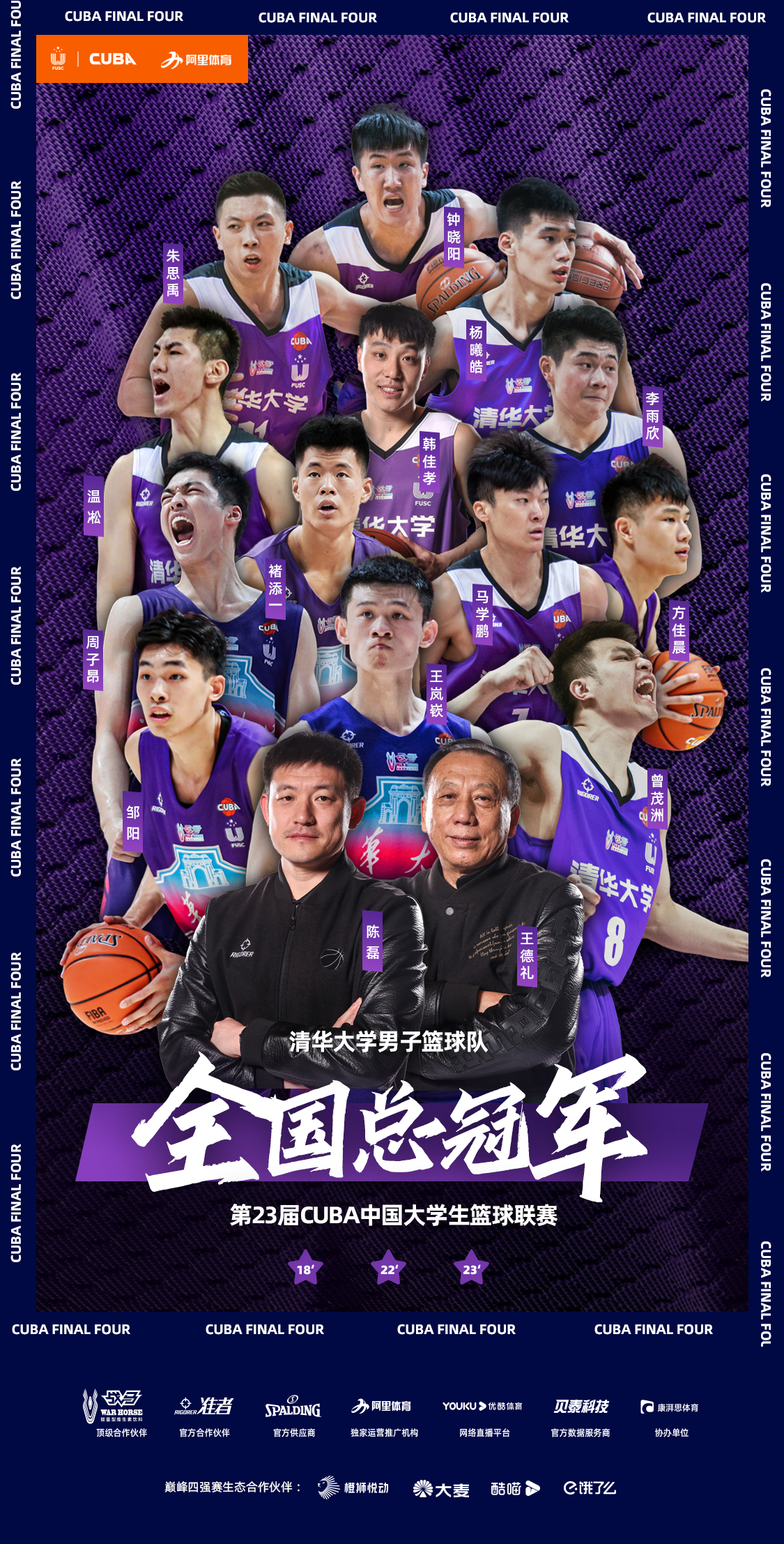 6月20日,在江蘇省蘇州市舉行的第23屆中國大學生籃球聯賽(CUBA)一級聯賽(男子組)全國總決賽上,清華大學93-75戰勝北京大學,衞冕第23屆CUBA全國總冠軍。