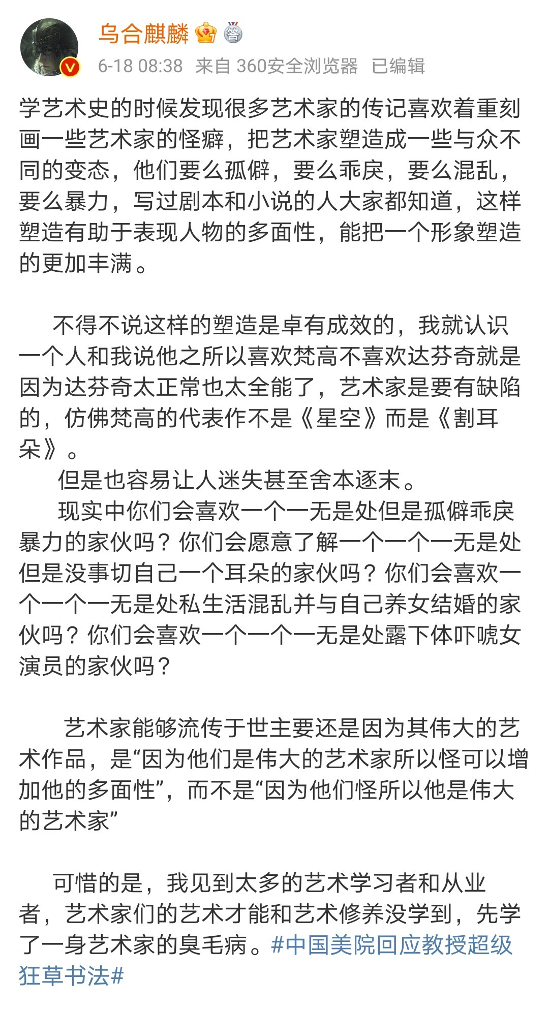 烏合麒麟:太多人沒學到藝術家們的才能和修養,學了一身的臭毛病_風聞