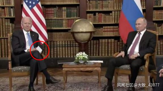 △16日,普京與拜登在日內瓦會晤現場(拜登手中持有手卡)