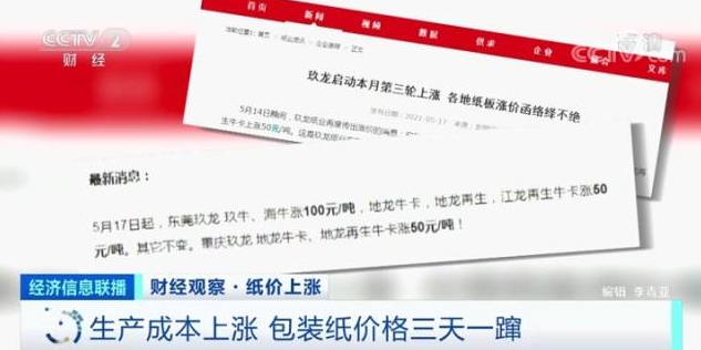 從春節開始,金屬、塑料等行業,就出現了不同程度的漲動。紙製品價格更是多次上調,從上游的原料到下游的消費端,一個接一個地漲。