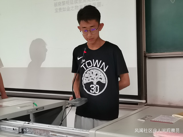 主持人向大家介紹了幾種口語提升的方法,例如,跟着錄音讀文章,在跟讀的過程中,不斷體會每個單詞的發音,句子的抑揚頓挫等;此外,跟讀美劇、英語等各種影視資源等也是練習口語的一個途徑。選擇自己喜歡的影視劇,找到自己喜歡的人物的台詞部分,試着把他的台詞演繹出來,或者可以找幾個同學分飾人物角色,再現影視劇中的部分場景。這些訓練方式無論是對於口語的鍛鍊,還是情感的表達,都有不錯的效果。在明確學習口語的重要性後,同學們積極走上講台,展示了自己準備已久的英語句子或文章