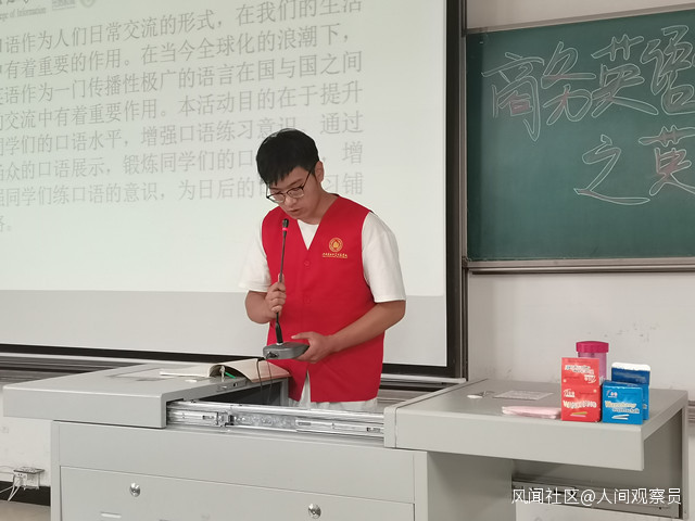 活動伊始,主持人介紹了本次活動的目的以及活動形式、背景。“紙上得來終覺淺,絕知此事要躬行。”所學知識要轉化為能力,都必須躬身實踐,注重在實踐中學真知、悟真諦,加強磨練、增長本領。學到的東西,不能停留在書本上,不能只裝在腦袋裏,而應該落實到行動上,做到知行合一、以知促行、以行求知。尤其是像英語這樣的學科,英語本質上是一門語言,而語言就是需要多學、多練、多交流、多實踐。