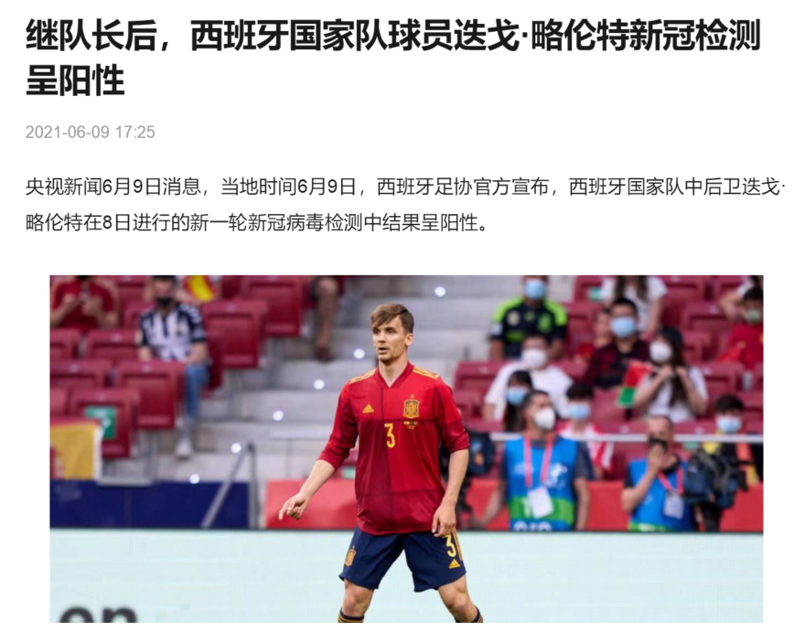 也是西班牙,作為老牌奪冠熱門,還沒開打就惹出了大麻煩,歐洲盃前熱身賽後佈教授(布斯克茨)核酸檢測呈陽性(前幾天二次檢測又轉陰),稍後略倫特也核酸陽性,全隊隔離。讓人們震驚的還在後面,西班牙球員們完全沒有得到接種疫苗的機會,因為按照西班牙的政策,要嚴格按照年齡施打,他們這年齡段的還早(但是西班牙奧運代表隊卻得到注射機會)。