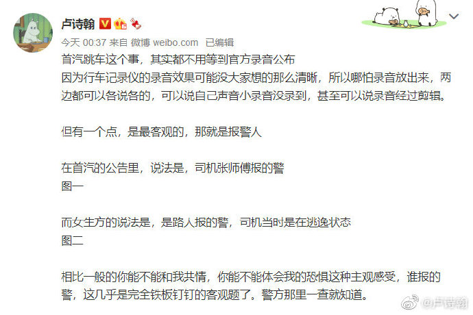 ps:我最擔心的,是按這個趨勢不斷渲染下去,女方一言不合跳車,甚至還有宣揚帶刀的,感到恐懼就先下手為強一刀過去,但你忘記了,司機也是人,也會“一看不對我也先下手為強”。以後搞不好一個路口開錯,偏離航線聲音響起,雙方立馬一言不合掏刀互刺。不費一兵一卒,曾經引以為傲的社會治安秩序就此消解那樣的一天,對於所有人來説,可能才是真的災難別覺得我誇張,看看現在美國警方在黑人區是什麼個情況~那是真的一個動作不對立馬掏槍