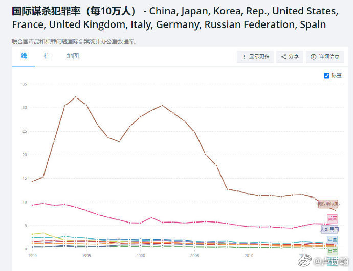 俄羅斯8.2美國4.9,英國1.2法國1.1,德國0.948,西班牙0.6,韓國0.6,意大利0.569,而中國是— — 0.527