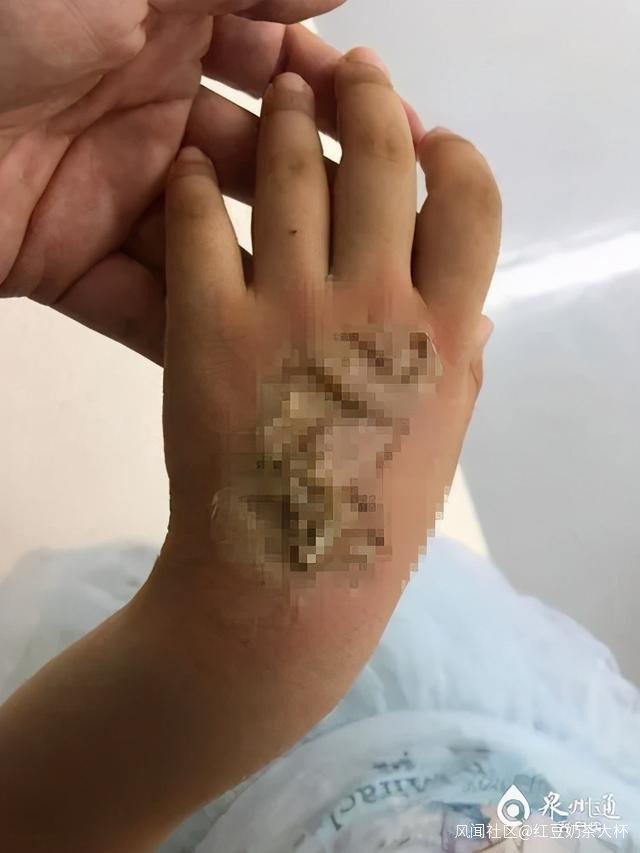 隨後,依依被送往了醫院進行治療。經醫生診斷,依依的手背屬於三度燒傷。
