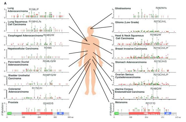 16種癌症類型中的常見TP53突變(圖片來源:參考資料[1])