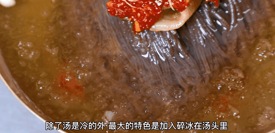 ▲ 湯裏帶碎冰碴的平壤冷麪