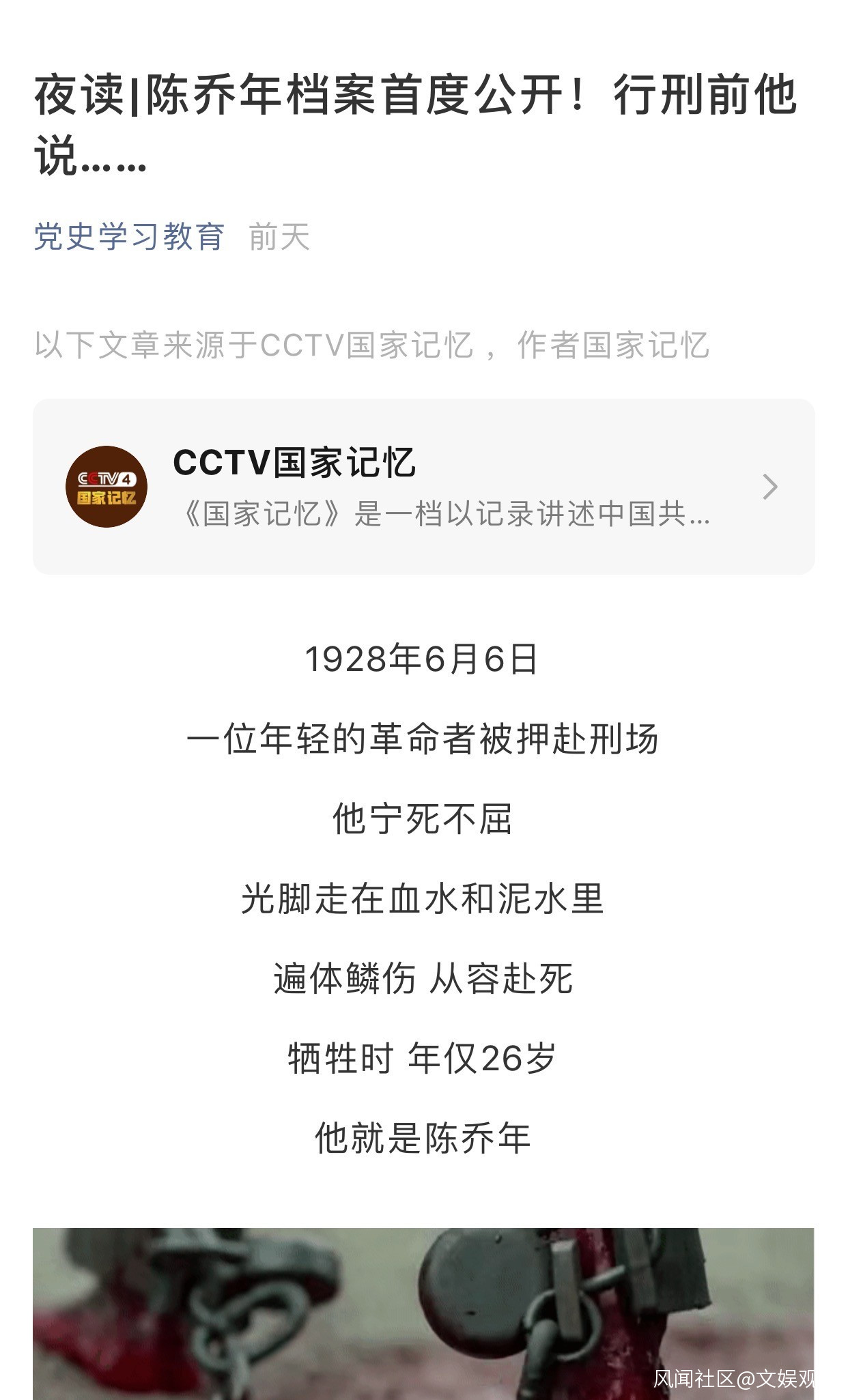 此後,“陳喬年履歷表首度公開”引發了互聯網頭部媒體資源的轉發和二次、三次加工的“自來水”報道,這些報道通過對“國家記憶”首發獨家內容的整理轉發,在微信端迅速形成刷屏態勢。