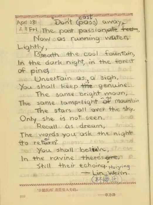 1939年,在西南聯大讀書的許淵衝將此詩完整翻譯,並送給心儀的女同學。