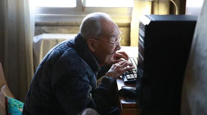 老友去家中看望他。結果進門後發現,許老正伏在案台繼續翻譯者莎士比亞的著作。年邁的他只能一隻手敲着鍵盤,一隻手拿着放大鏡審讀譯文。