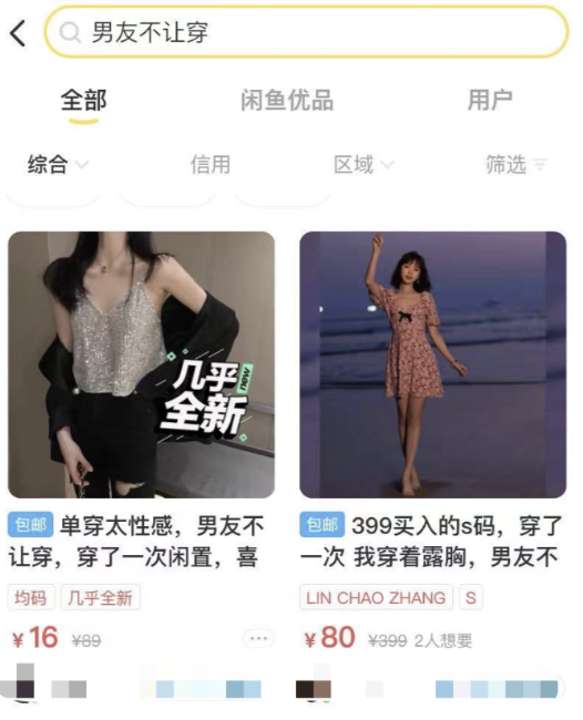 在某二手平台上,甚至有專區賣那些「男友不讓穿出門」的性感衣服。