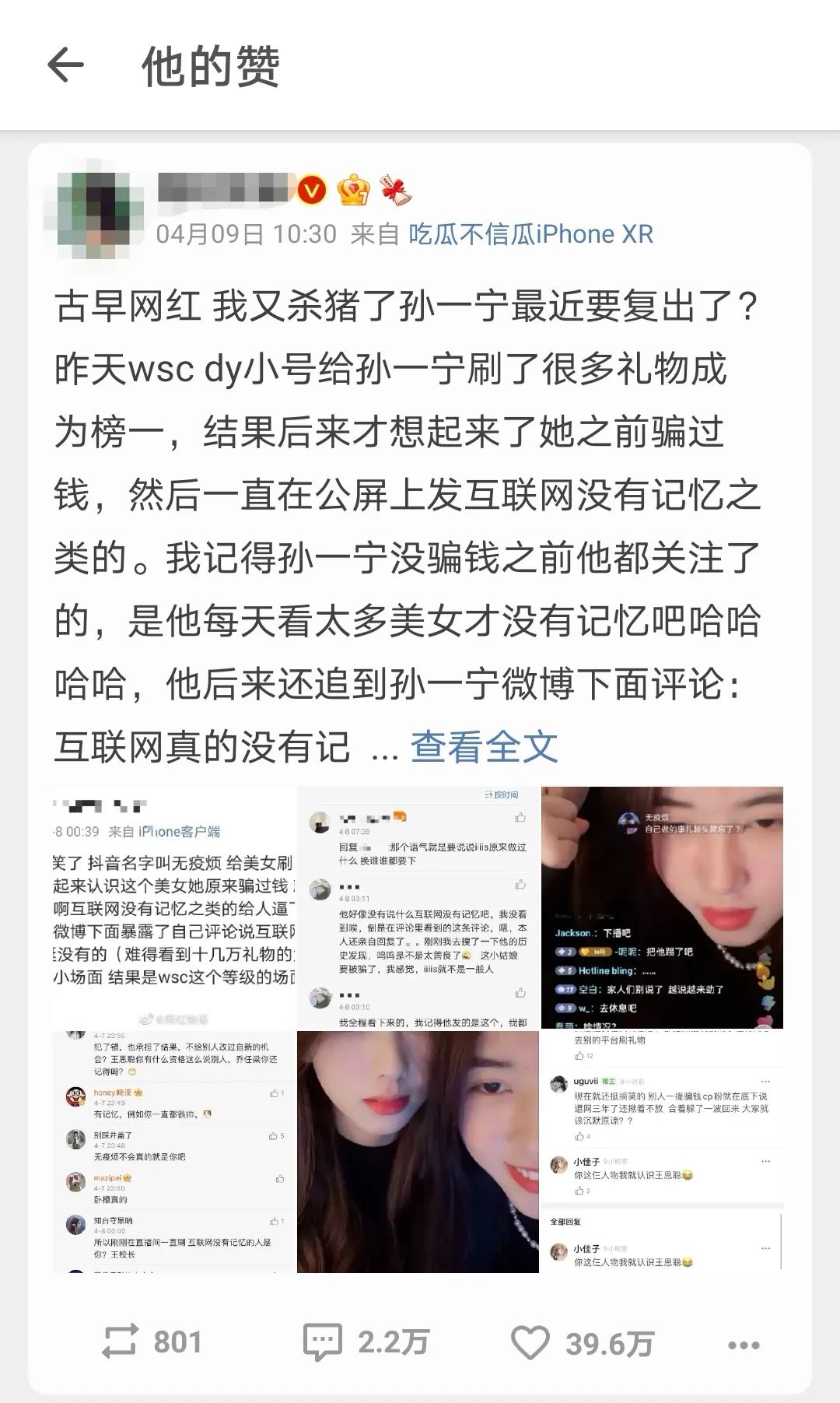 原來,這位網紅孫一寧和四年前王思聰追求過但對他愛搭不理的,曾經因收了廠商推廣費沒發推廣而道歉退網的網紅「我又殺豬了」是同一個人。