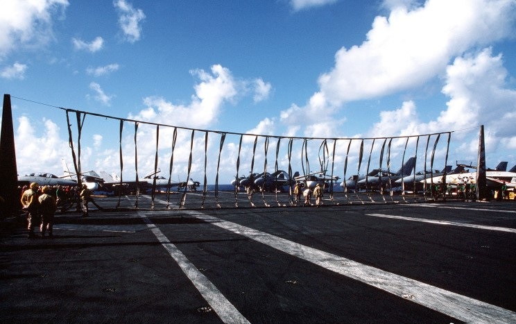 那又怎麼樣?別説空間站了,就説航空母艦吧!航空母艦也很高大上,航母上使用“阻攔索”,極端情況下還要採用“阻攔網”,來幫助無法正常着艦的戰機減速、降落。有圖為證: