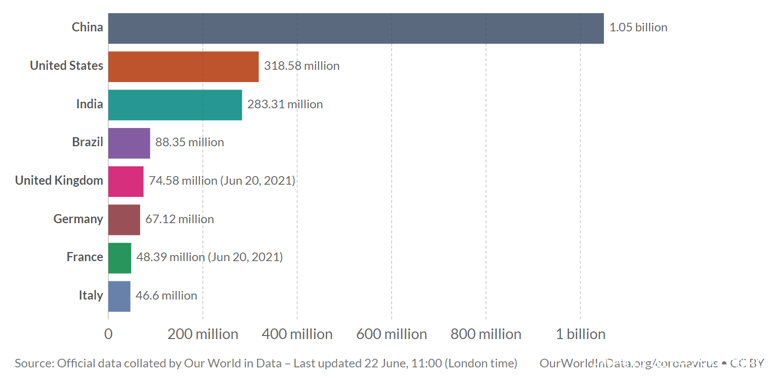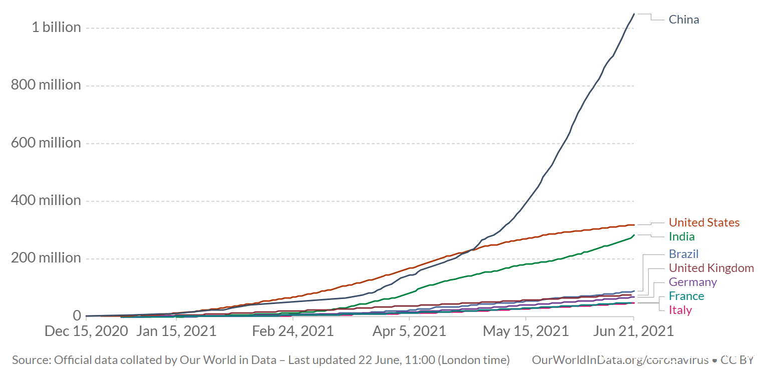 截止2021年6月21日,全球累計接種新冠疫苗27.01億劑,其中單日接種3820萬劑。
